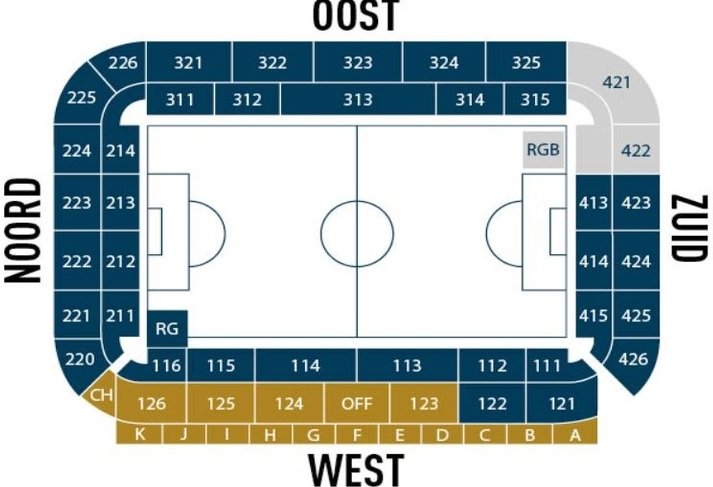 The seating arrangement map of Jan Breydel Stadium shows all the stands of the stadium along with numbers. This map is also very useful for finding seats in the stadium. The location of the pitch and goalpost is also clearly mentioned on the map. The stands of the stadium are drawn in different colors for easy identification. With the help of the Jan Breydel Stadium seating plan, visitors can easily find their seats in this Stadium. This Stadium has multiple entry and exit gates and visitors should check their tickets for the entry gate numbers.