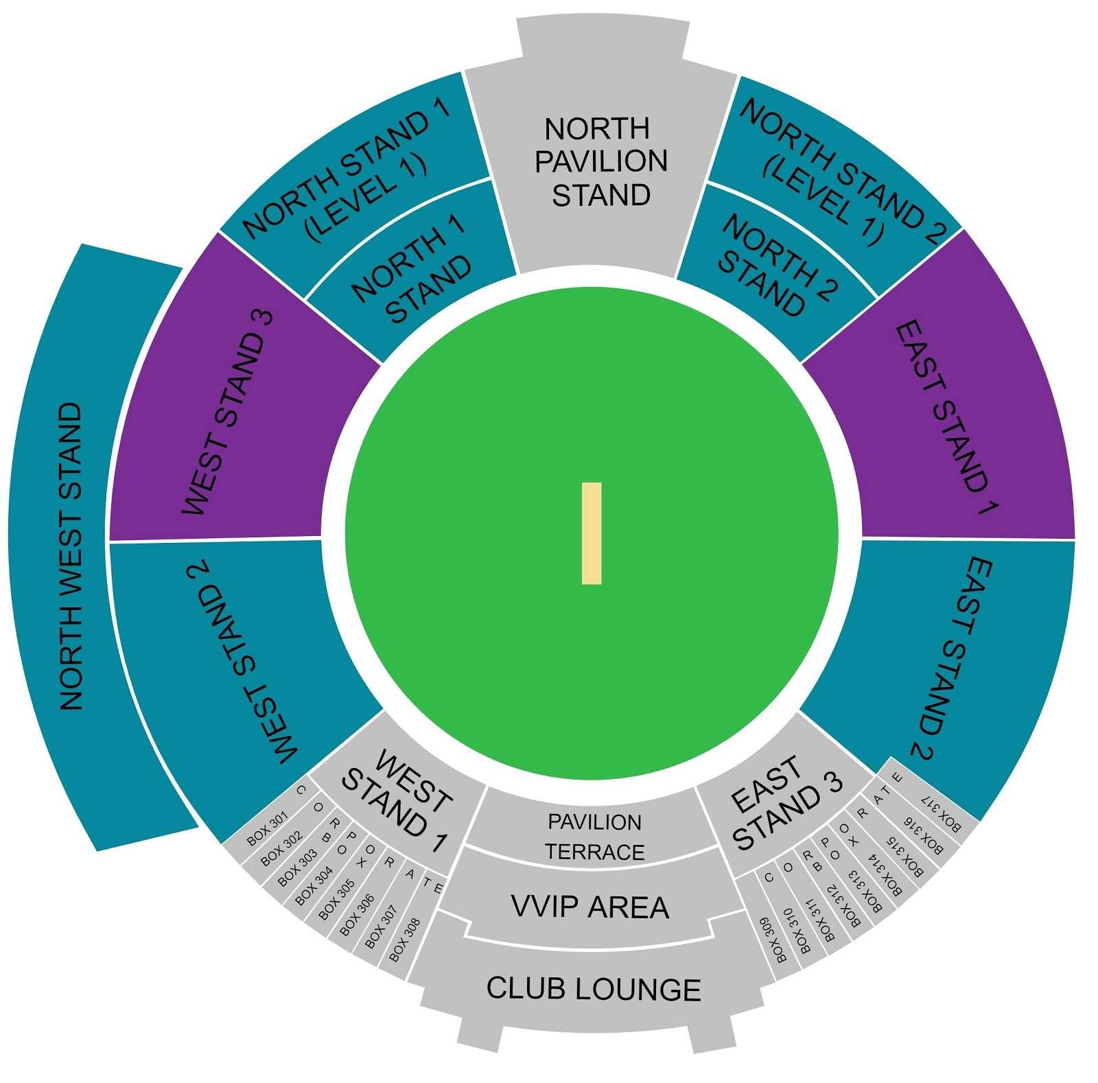 The seating capacity of the stadium is 23000 and the Dharamshala cricket stadium seating plan shows all the stands of the stadium. The club lounge, VVIP area, pavilion terrace, etc. are clearly depicted on the map. With the help of this map, cricket fans can easily find their stand and seat numbers. All the corporate boxes are drawn on the map along with numbers.