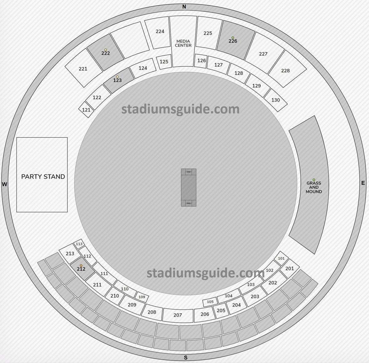 The names of the stands are marked on the map along with block numbers and categories. Sir Vivian Richards Stadium seating plan with seat numbers and rows is very important to locate seats in the stadium. The location of the South Stand, North Stand, grass area, pitch, party stand, corporate boxes, hospitality lounge, media center, etc are depicted on the map. The names of the categories on the seating map are very useful for finding the seats. The categories are gross and mound, standard, standard plus, and premium.