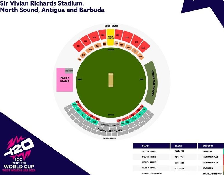 Vivian Richards Stadium T20 World Cup Tickets Price List 2024