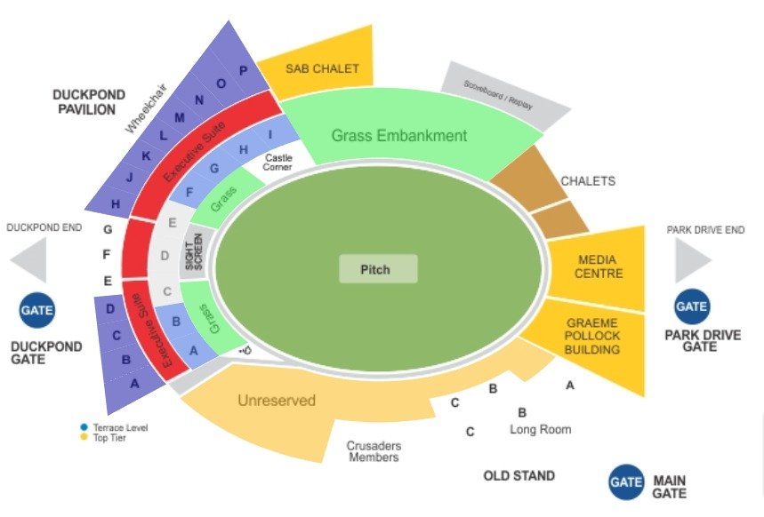 St George’s Park Cricket Ground is a popular Cricket Ground located in Gqeberha, South Africa. It is popularly known as St George’s Park at this place is very popular amongst cricket fans. It is commonly known as St George’s Park, Crusaders Ground among the locals. It is one of the oldest cricket grounds in South Africa and it has hosted many notable cricket matches and events in the past. This cricket stadium is always in LimeLight due to the large number of cricket matches in this cricket ground. The seating capacity of the stadium is 19000 and during the hosting of matches in this stadium, visitors look for St George’s Park seating plan with seat numbers to locate their seats.