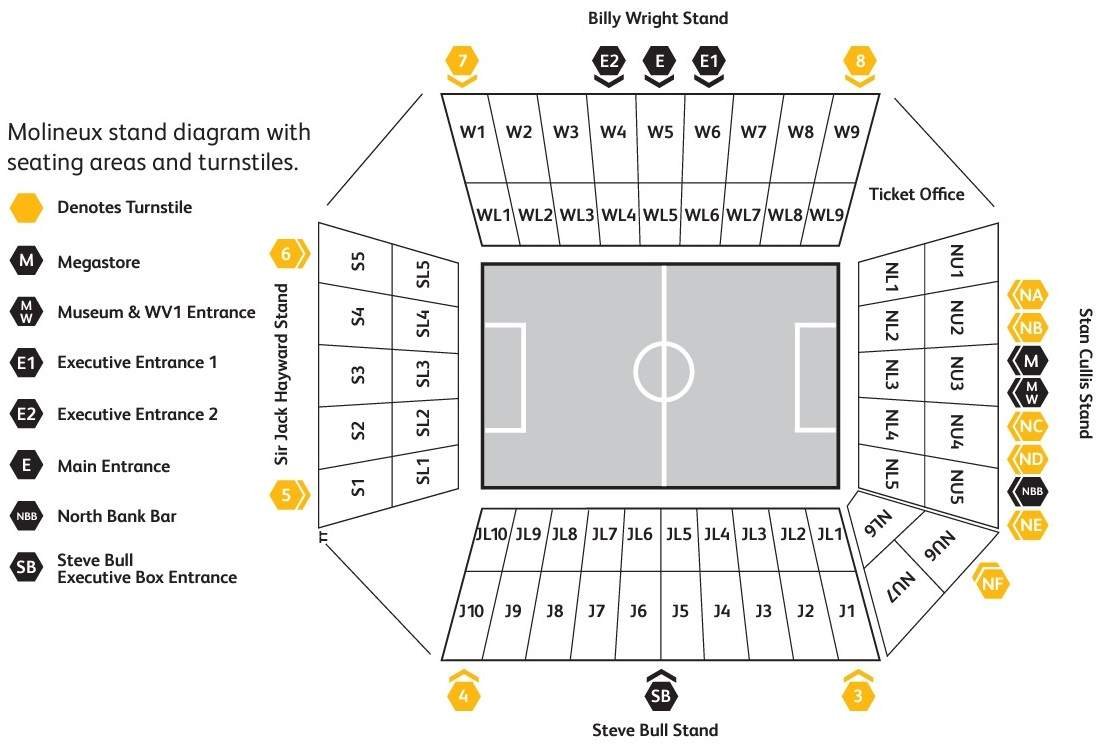 Molineux Stadium Seating Plan with Rows 2026