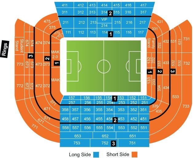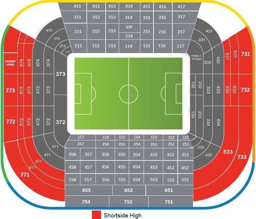 We have added the seating map of the stadium. All the rows of the stadium along with the stands are depicted on the map. It is very useful to find the seat numbers and rows in advance before visiting the stadium. During the demanded matches of football, it is very difficult to find a seat in a large stadium without the help of a proper seating plan layout. The map shows all the important details along with the pitch’s location. The location of the student stand is also marked on the map along with the location of Shortside High & Longside High.
