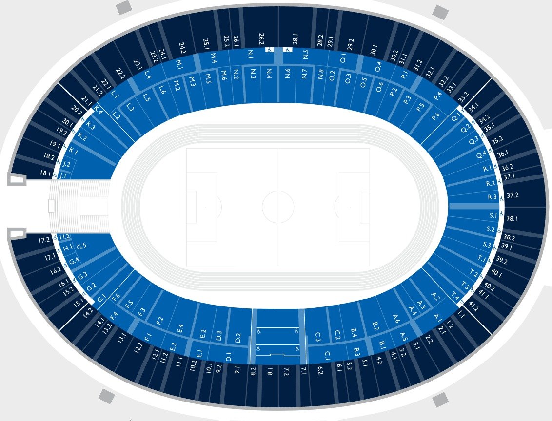 Berlin Olympic Stadium seating plan 2026 shows all the rows and stands of the stadium in a clear layout. The location of the ground and pitch is also mentioned on the map. This map is helpful in locating seats in the Berlin Olympiastadion. This Stadium has multiple stands and rows, and the clear location of the stands makes it easy for the visitors to locate their seats. This is the biggest sports stadium in Germany and without the help of the Olympiastadion seating layout map, it is tough to find seats.