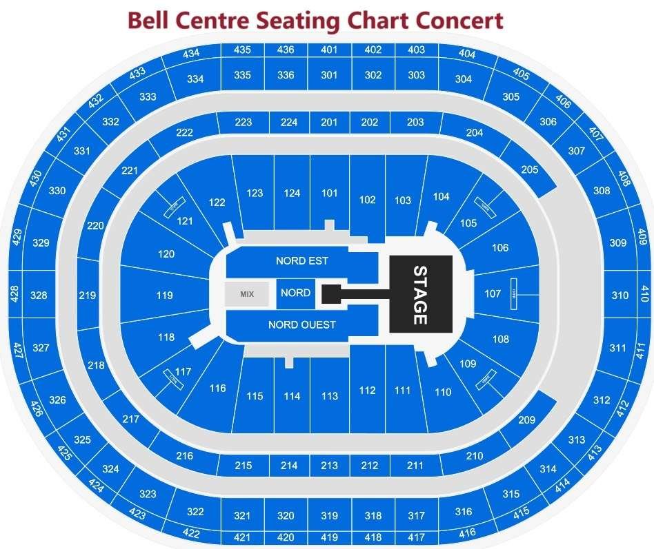 The seating layout of Bell Centre Arena for concerts is differently set as compared to regular seating. With the addition of the stage in the middle, the view from some of the seats is not so good. Therefore, visitors look for the Bell Centre seating chart concerts with seat numbers to find and book the best view seats.
