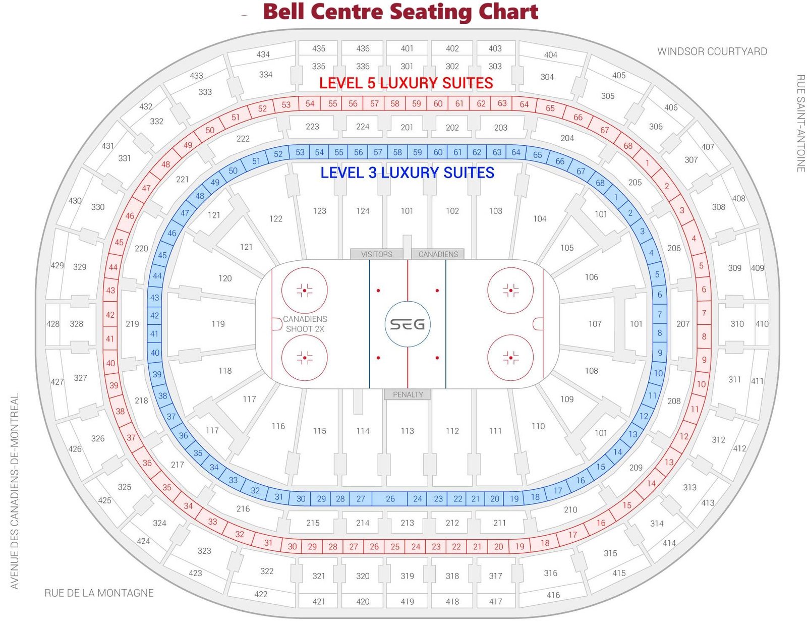 Bell Centre Seating Chart with Seat Numbers and Rows and with VIP Suites