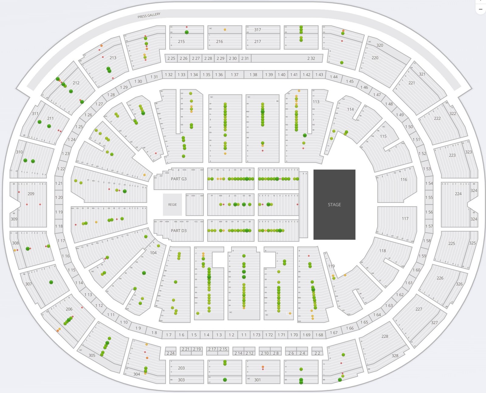 The location of the stage is marked on the image and generally stage is set up in the same location. All the rows of the stadium are depicted on the Videotron Arena seating chart for concerts and events. The rows of all the levels of the Arena are marked on the map with numbers. With the help of the seating plan layout of the Arena, it is easy to find and book best-view seats in the Videotron Centre Arena.