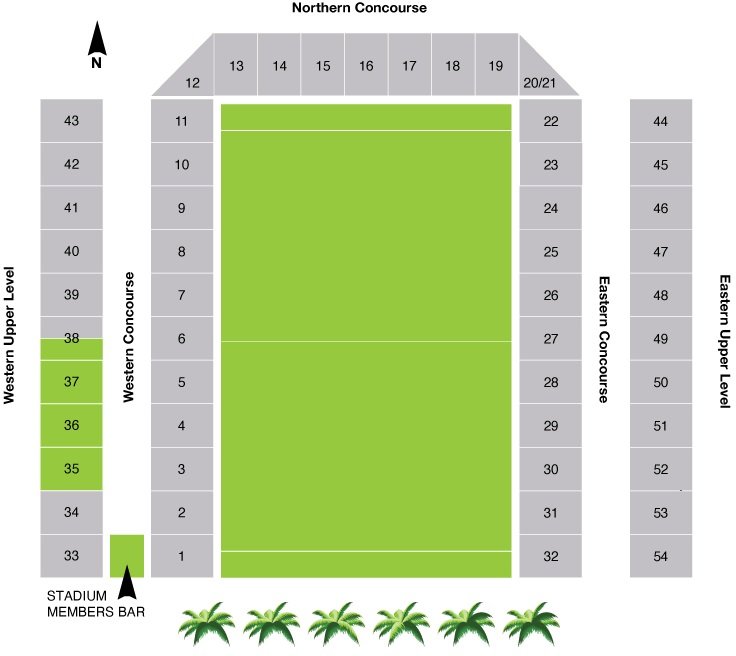 The seating layout map of the Industree Group Stadium is very helpful in finding seats in this stadium. The central cost stadium is surrounded by seats on three sides. On the fourth side, it is surrounded by palm trees with a view of the Brisbane Water. Northern Concourse, Western Concourse, and Eastern Concourse are the names of the main stands. The seats are also fixed on the Eastern Upper Level and Western Upper Level. The names and numbers of the rows and blocks are clearly depicted on the Central Coast Stadium seating map. the location of the ground is also shown on the map. With the help of the Industree Group Stadium seating layout map, it is easy to find the best view seats.