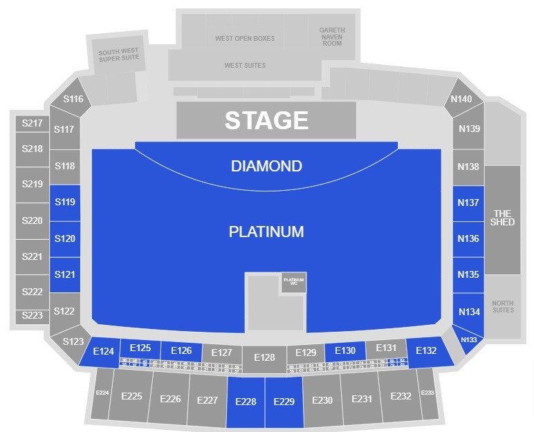 This Stadium can accommodate more than 25000 guests for the concerts. The seating layout is entirely different for the concerts as compared to sporting events. All the stands and rows are clearly mentioned on the map for easy identification. The location of the stage, Diamond, and Platinum section is also drawn on the map.  The layout of the HBF Park for concerts can be different from the above map as per the demand and type of event.