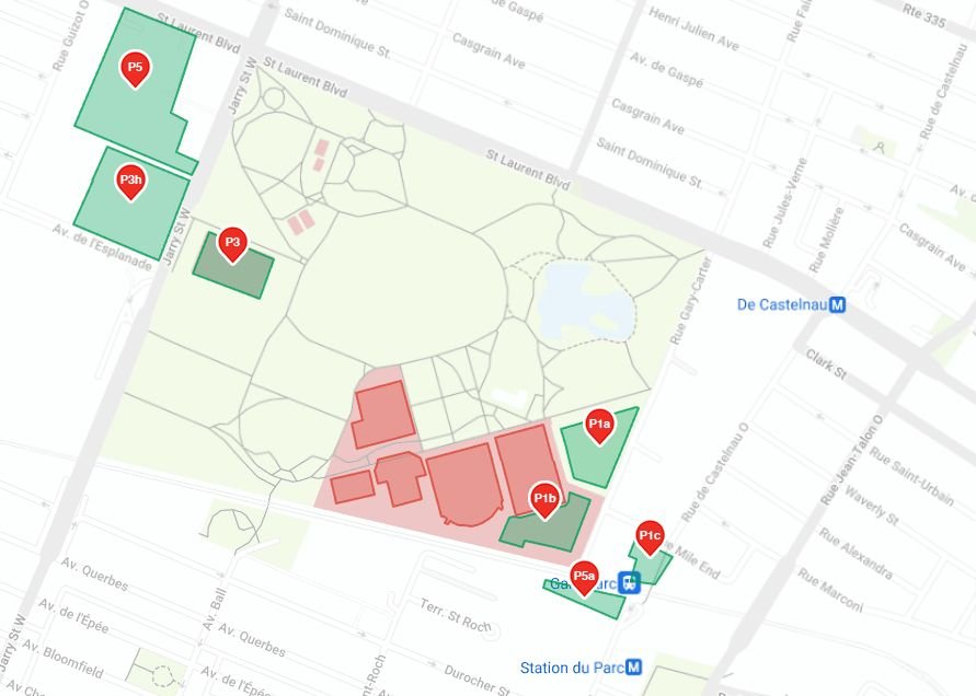 Parking is very limited near the stadium therefore the public transport option is the best way to reach the venue hassle-free. Reaching here via public transport is a simple and convenient option. It is difficult to locate parking near the stadium during the big games. The location of the parking lots is depicted on the map along with the location of the public transit option. The location of the nearby roads is also mentioned on the map for easy navigation. De Castelnau Metro Station, Parc Station, and Jarry Station are the nearest metro stations and they are mentioned on the map too.