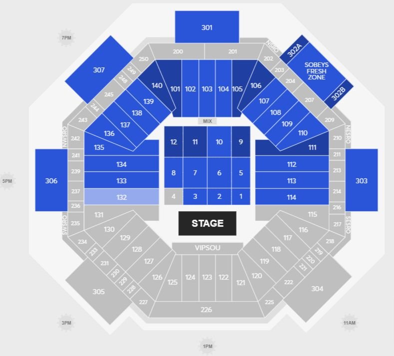 The seating plan of the stadium for the concerts is entirely different due to the state setup. The seating capacity for concerts and musical events is in the range of 11000 to 14000 depending on the layout of the seating plan. The stage and seats are set up in the stadium in a manner so that a maximum number of fans can enjoy the concert without any interruption in the view. The seating map of the Sobeys stadium with rows helps in finding the best-view seats inside the stadium.