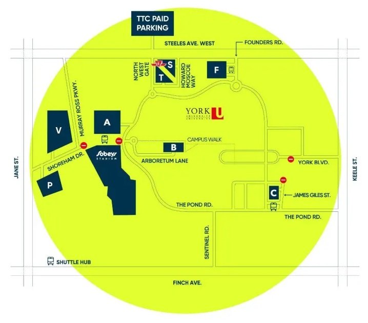 Parking is available near the stadium and multiple parking lots are located near the venue. Still, reaching here via public transport is the best option. The nearest subway station is Pioneer Village station is around 8 8-minute walk from the Tennis venue. The location of the parking lots near the stadium is depicted on the map.